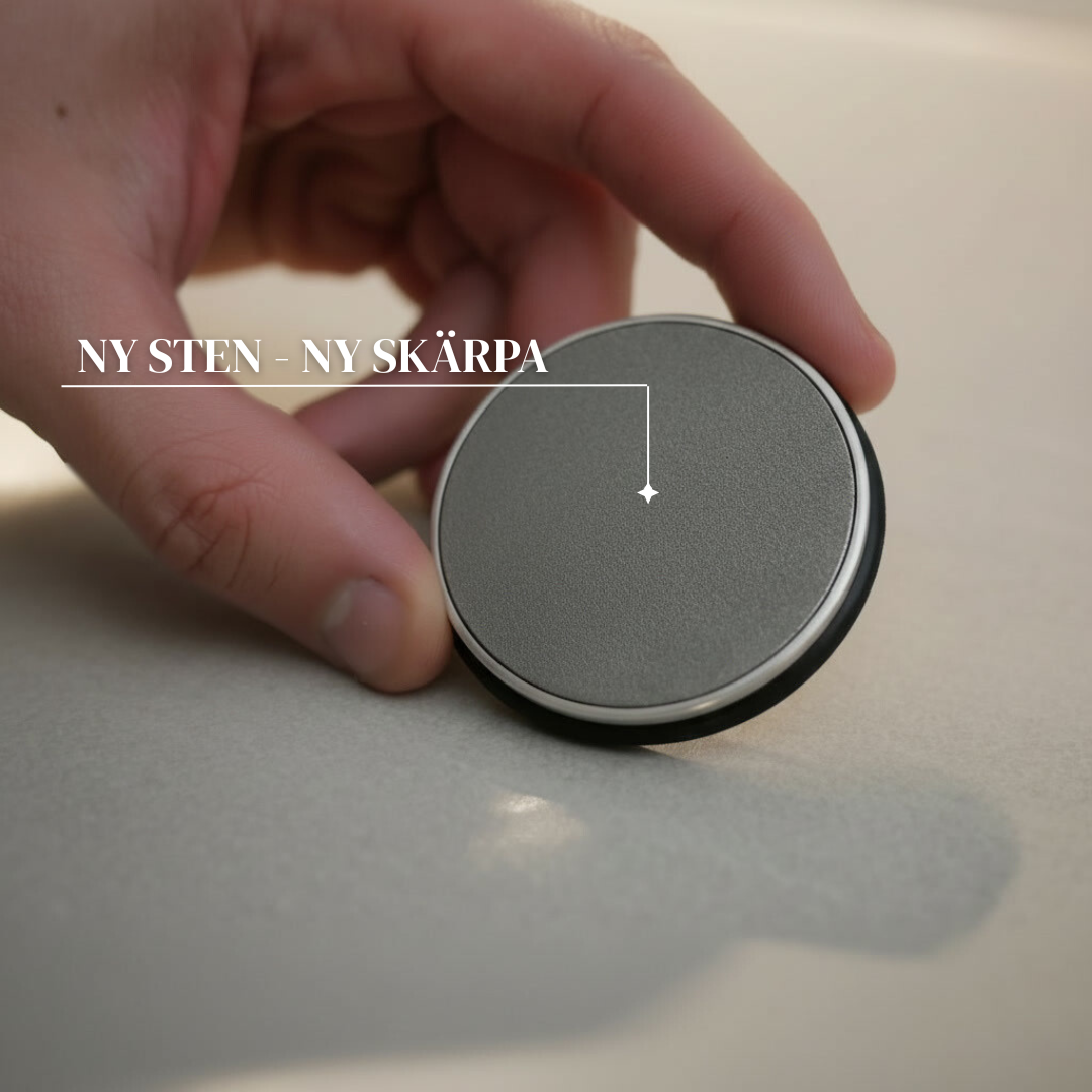 Det kan vara viktigt att veta. Ju högre siffran är på din slipsten ju finare blir slipningen. I paketet får du med två slipstenar, en på 400 & 1000.
